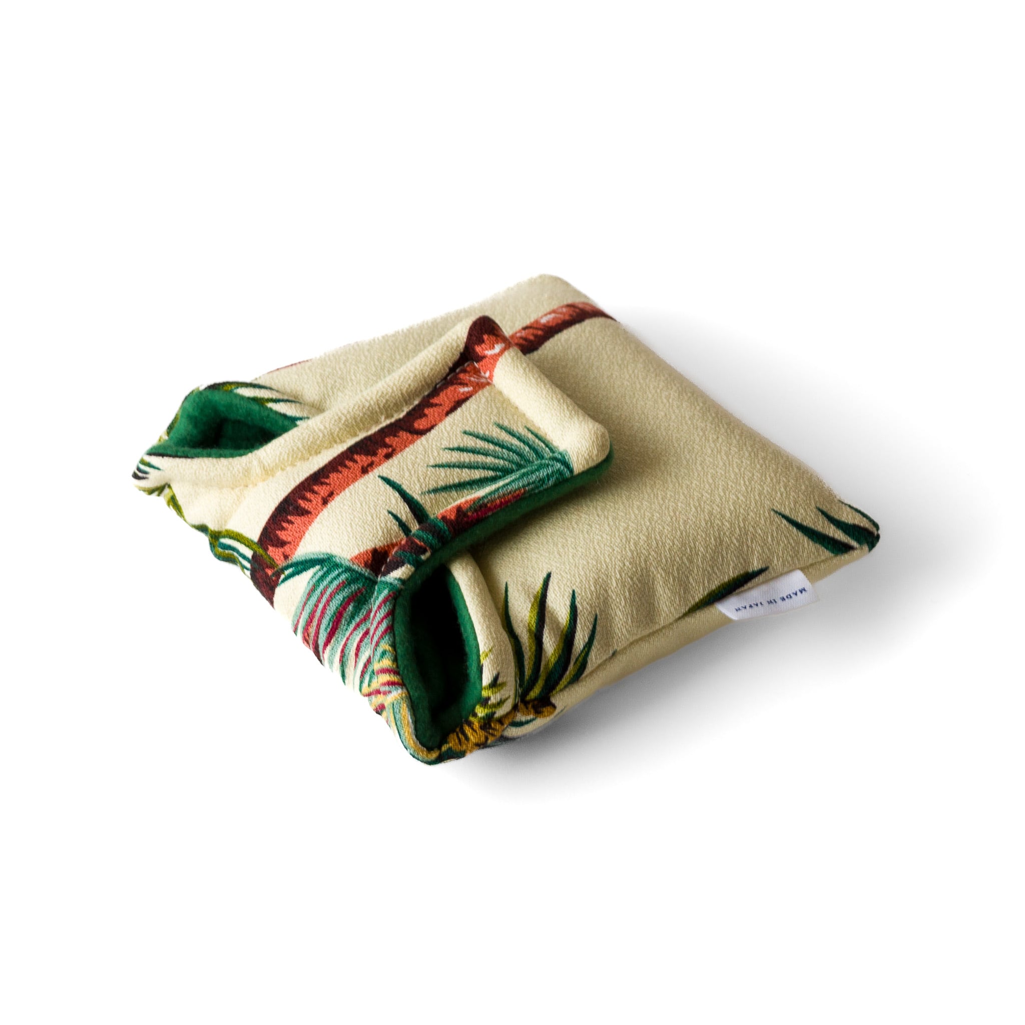 ハワイの伝統布「バーククロス」を使ったパターカバーです。厚手でしっかりとした生地は、表面に細かな凹凸があり、さらりとした独特の手触りが魅力です。