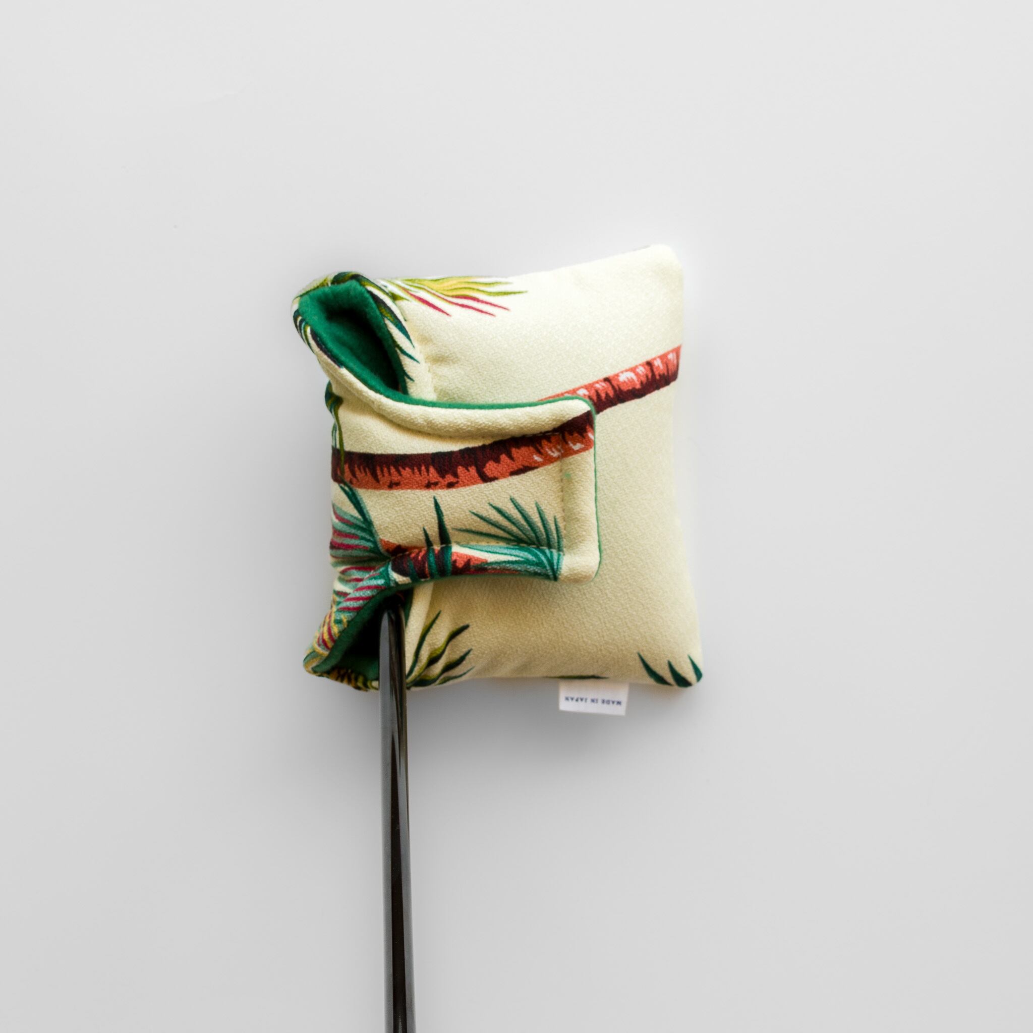 This putter cover is made from authentic “bark cloth,” a traditional Hawaiian fabric. The material is thick and durable, with fine ridges and a dry, textured feel that stands out.