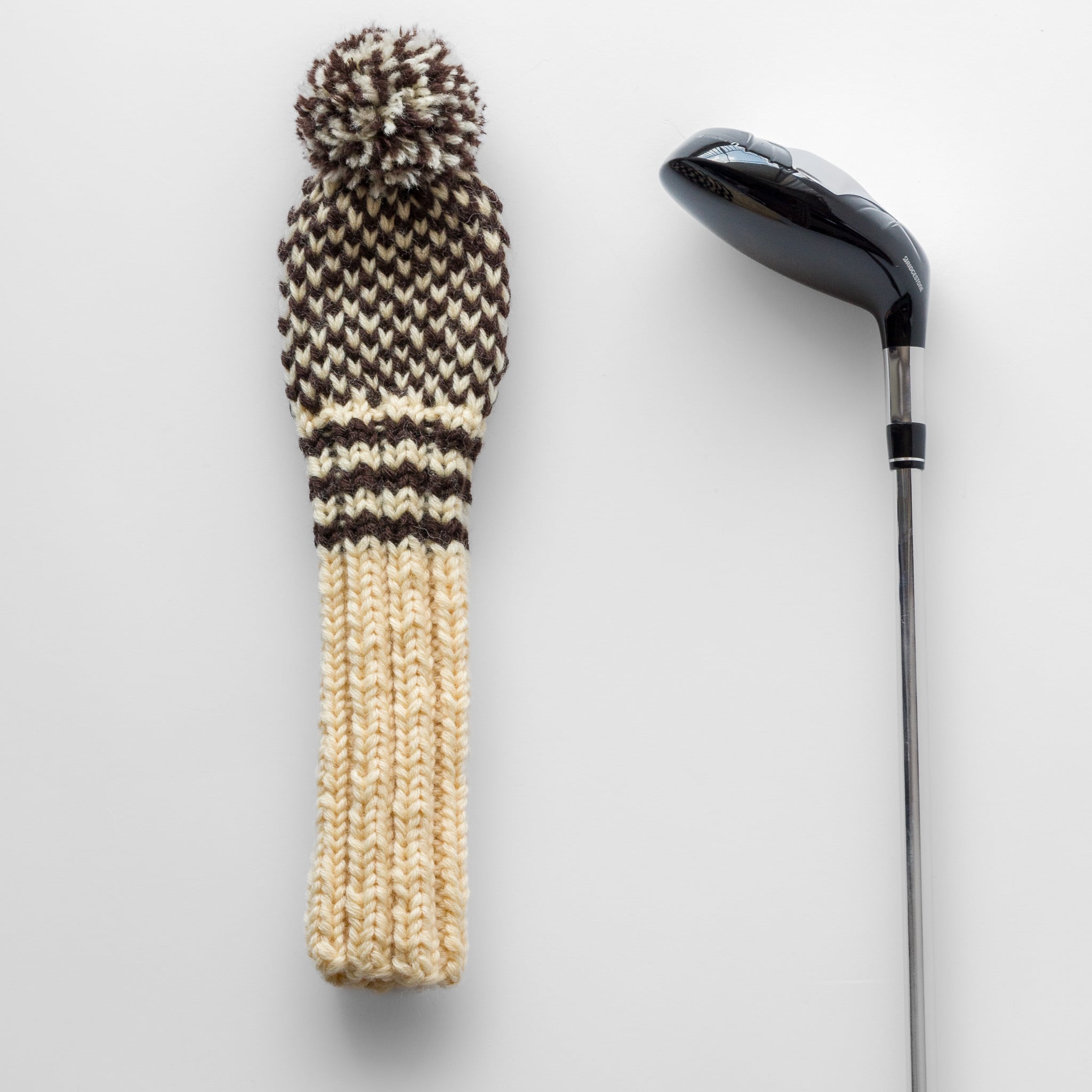 This 100% wool hand-knitted headcover is designed for hybrid clubs, which are great for every shot, from tee shots to tricky shots in the woods. The cover’s compact design makes it easy to handle in any such situations. The small pom-pom won’t get in the way when stored with other clubs.