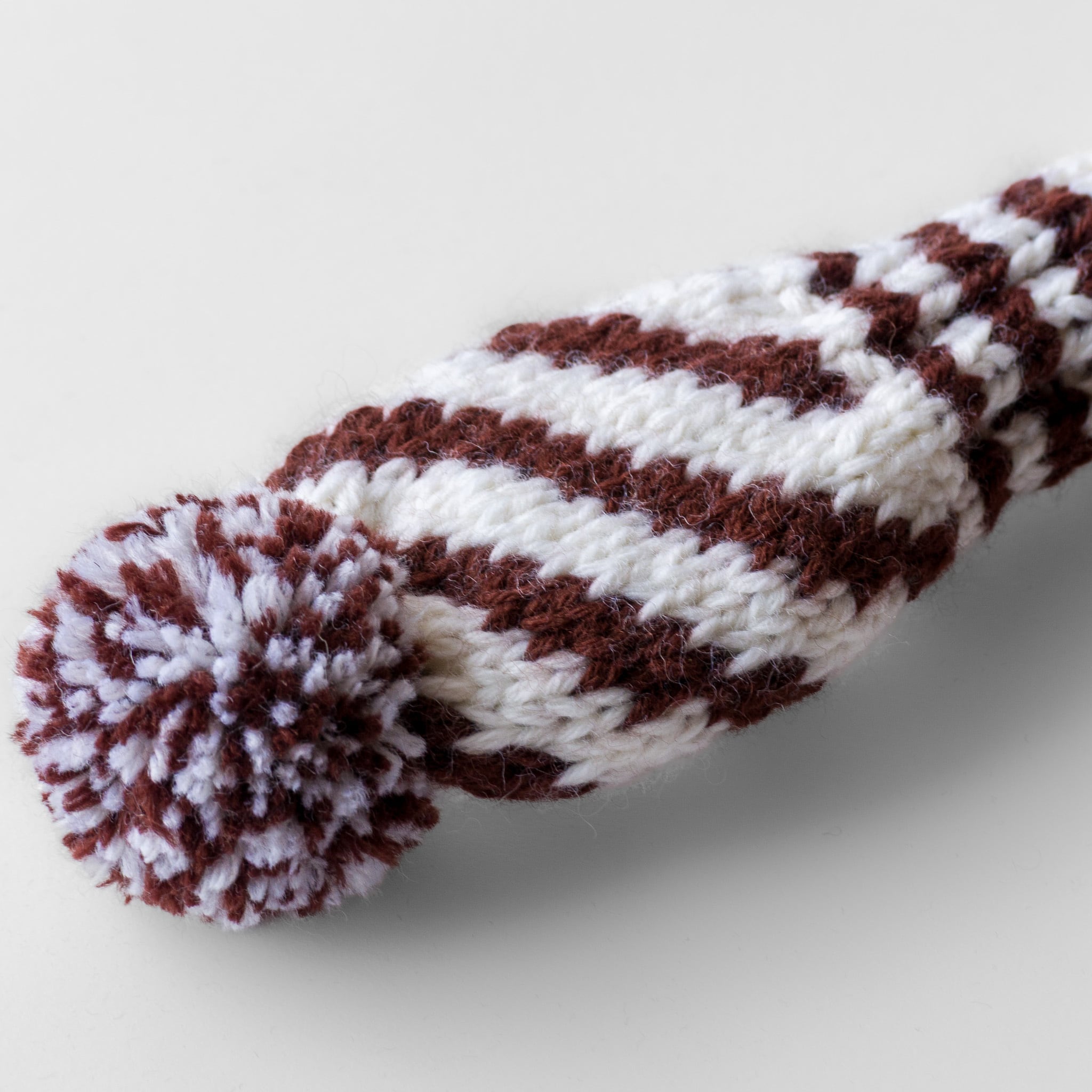 This 100% wool hand-knitted headcover is designed for hybrid clubs, which are great for every shot, from tee shots to tricky shots in the woods. The cover’s compact design makes it easy to handle in any such situations. The small pom-pom won’t get in the way when stored with other clubs.