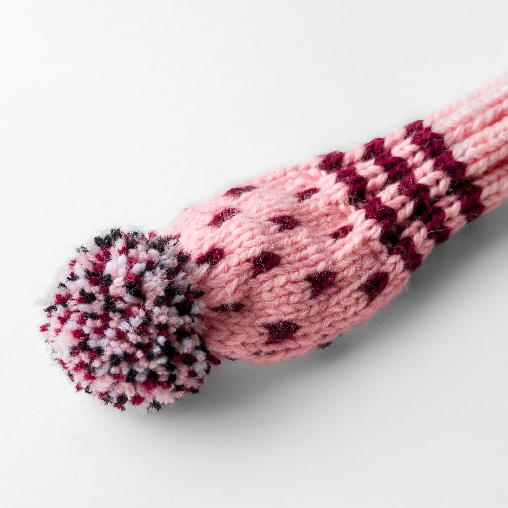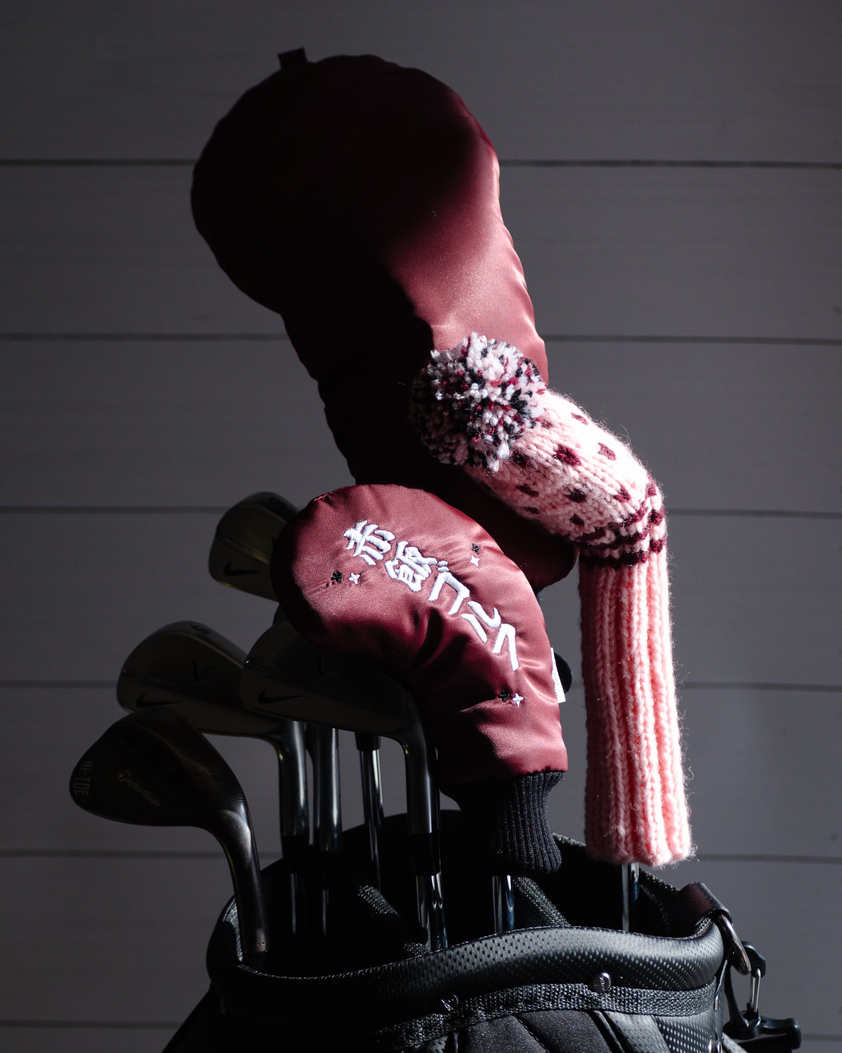 This 100% wool hand-knitted headcover is designed for hybrid clubs, which are great for every shot, from tee shots to tricky shots in the woods. The cover’s compact design makes it easy to handle in any such situations. The small pom-pom won’t get in the way when stored with other clubs.