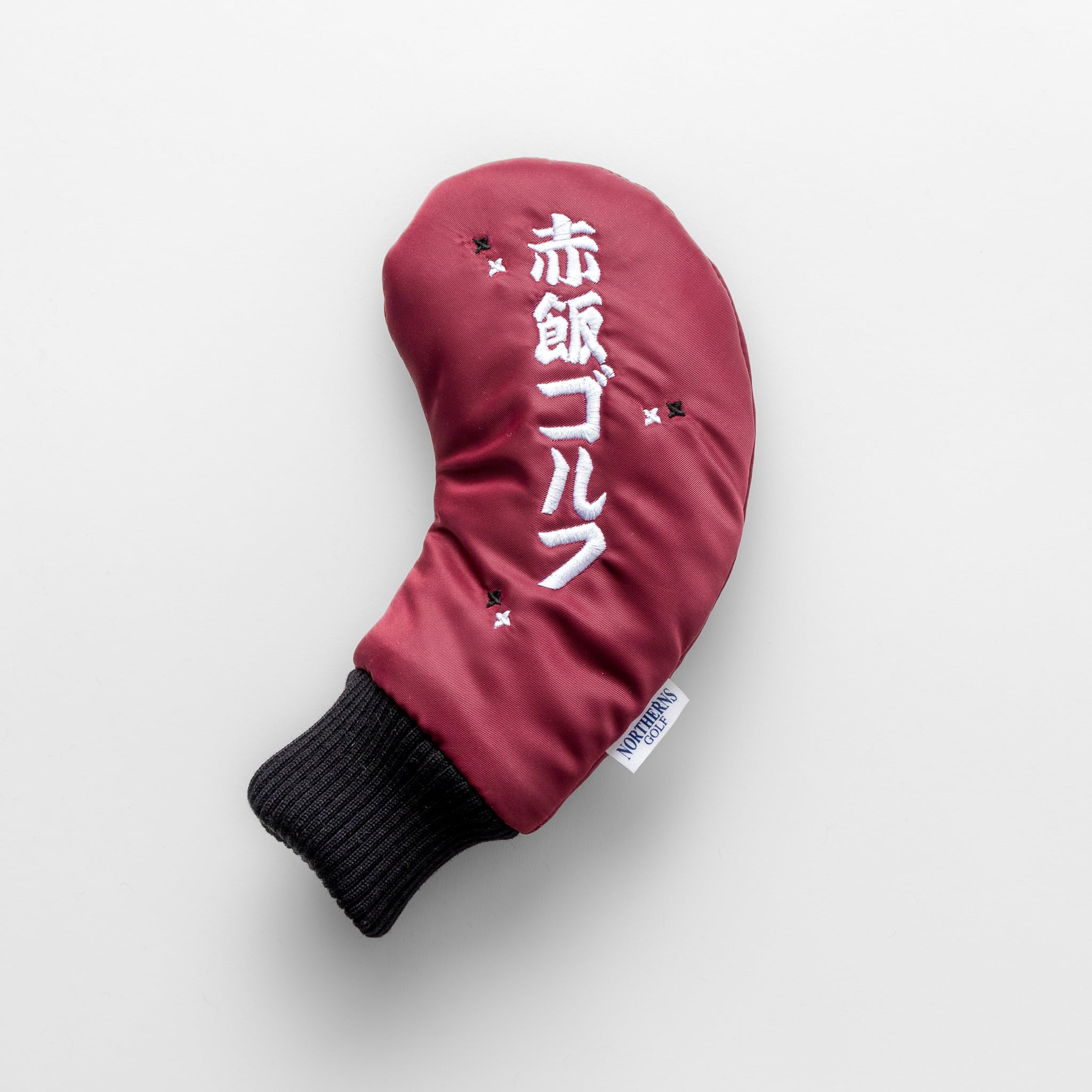 Headcover "MA-1 RIB" のアイアンカバーに、特別な刺繍を入れたプロトタイプです。独自の調査によれば、ラウンド前に“お赤飯のおにぎり”を欠かさず買う——そんなルーティンを持つゴルファーが、ごくわずかにいらっしゃいます。お赤飯をエネルギー源とし、「自分こそ赤飯ゴルファーだ」という方をお待ちしております。