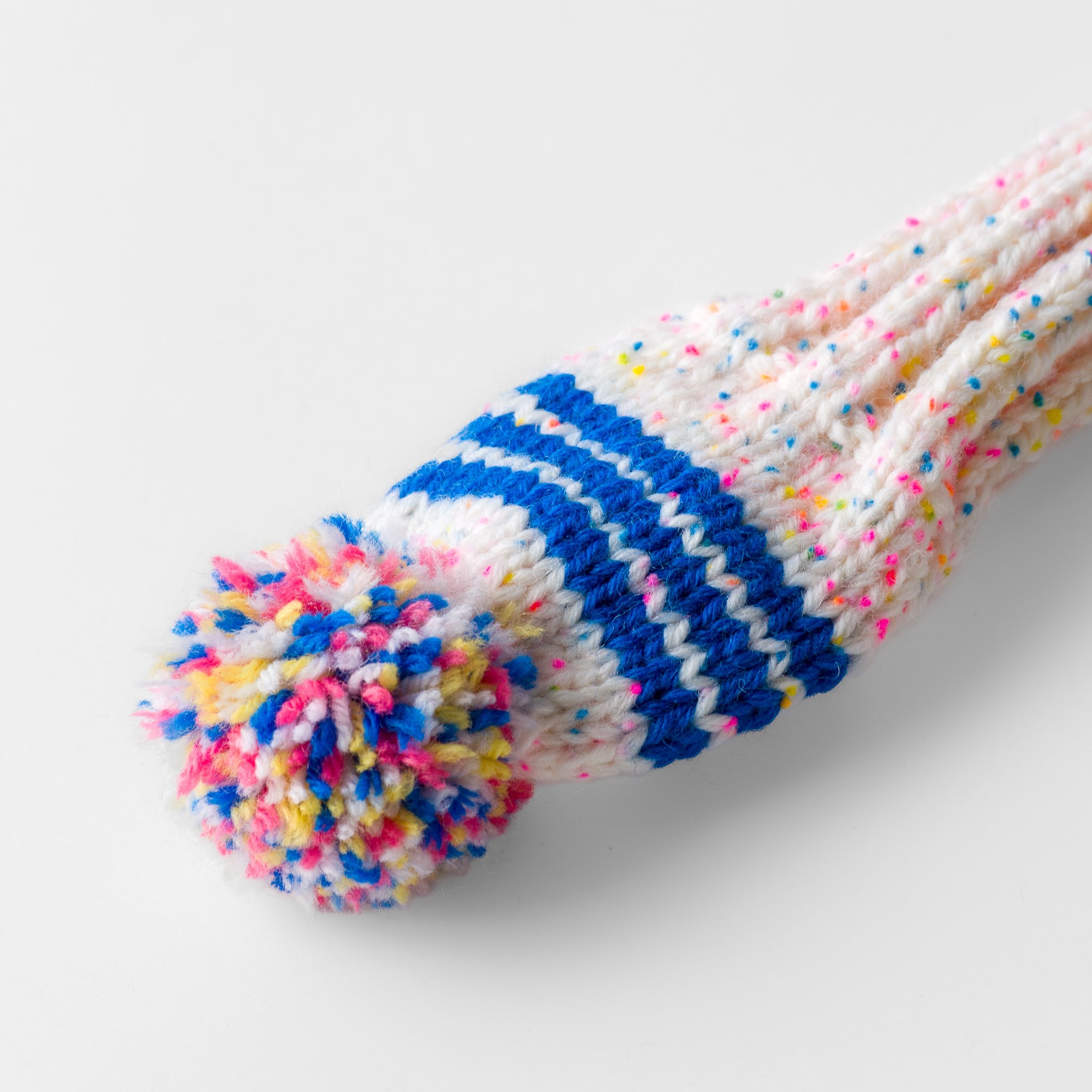 This headcover is hand-knitted with yarns we blend ourselves, using wool as the base.