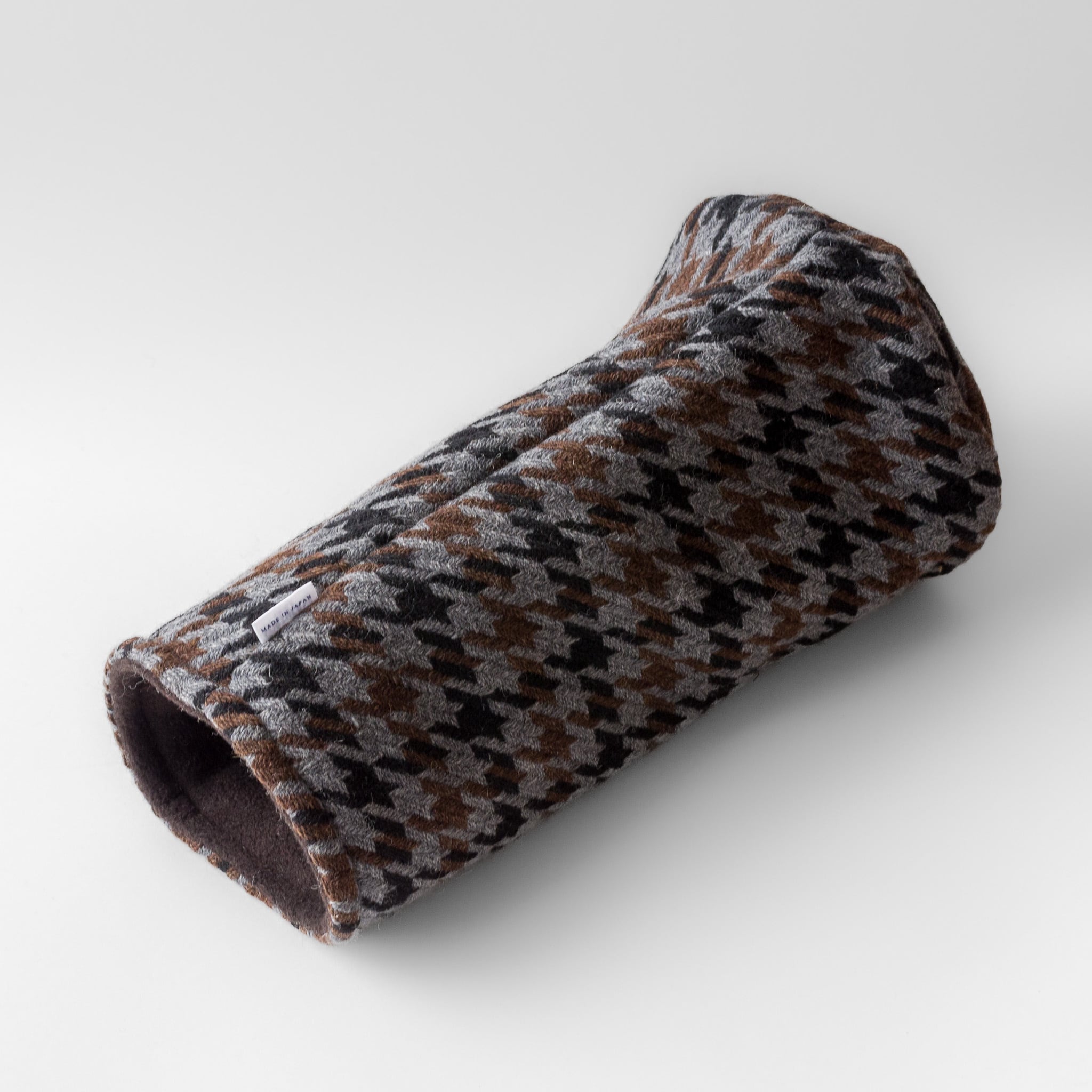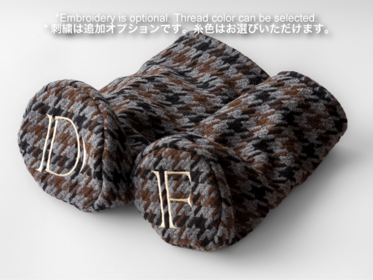 This headcover is made from a tri-color houndstooth tweed woven in the Bishu region, a well-known wool area in Japan. The fabric has a soft feel with a light, airy texture, and the calm color mix gives it a classic and grown-up look.