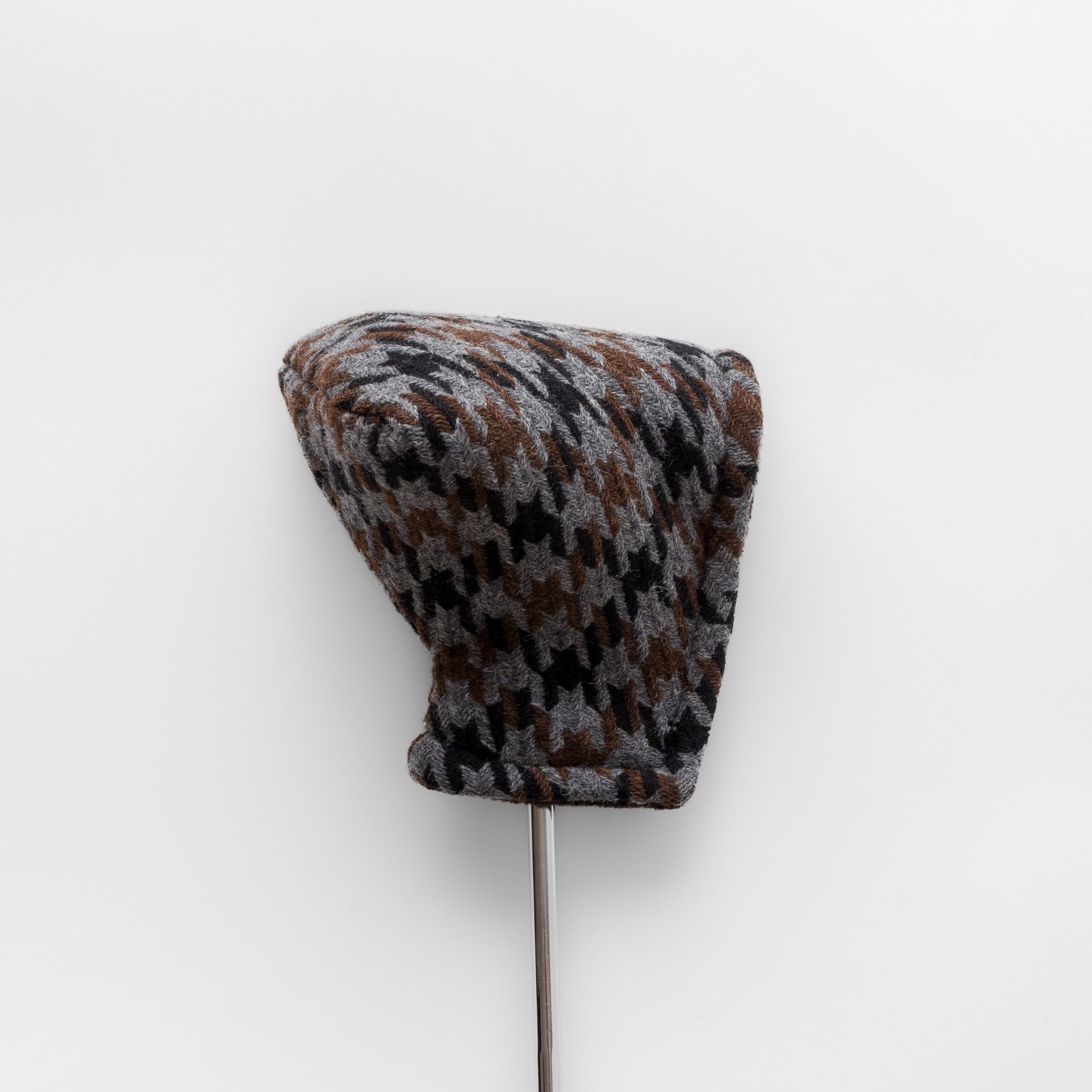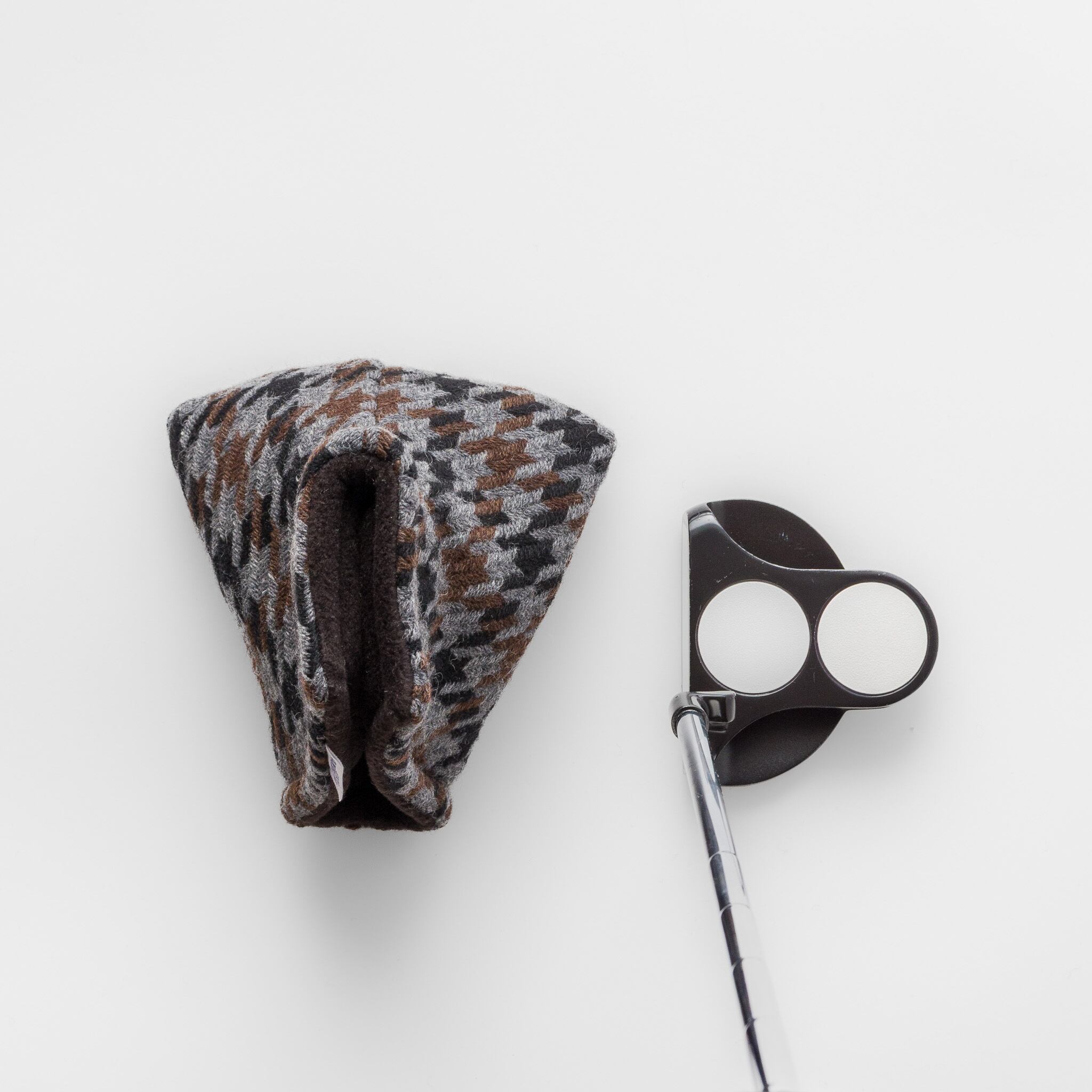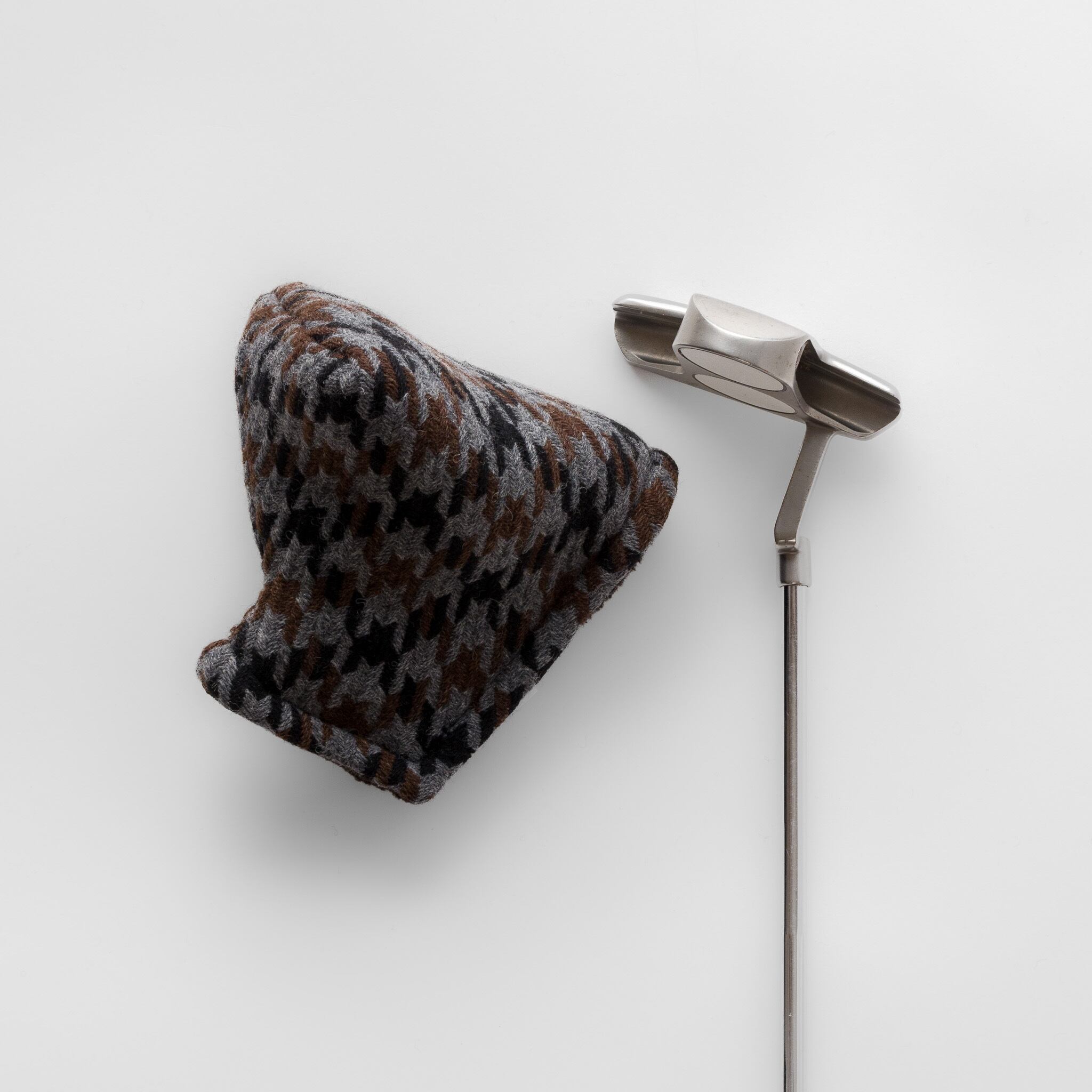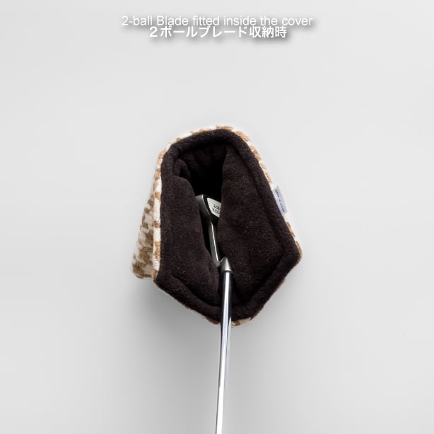 日本のウール産地として知られる尾州で織られた、三色の千鳥格子ツイードを使用したパターカバーです。マレットタイプでもネック(ホーゼル)をしっかり保護できるよう、ブレード用パターカバーのスタイルで、マレット用にサイズを調整し製作いたしました。パターを大切にされているお客様にぜひご使用いただきたいカバーです。
