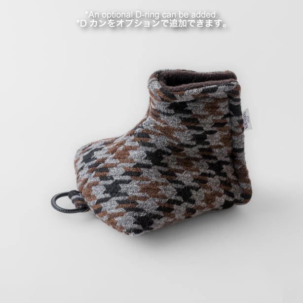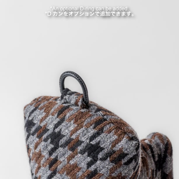 This putter cover is made from a tri-color houndstooth tweed woven in the Bishu region, a well-known wool area in Japan. It is designed to protect the hosel (neck) even for mallet-type putters. The size has been adjusted from the blade-type putter covers, making it ideal for mallet putters. This cover is highly recommended for customers who take good care of their putters.