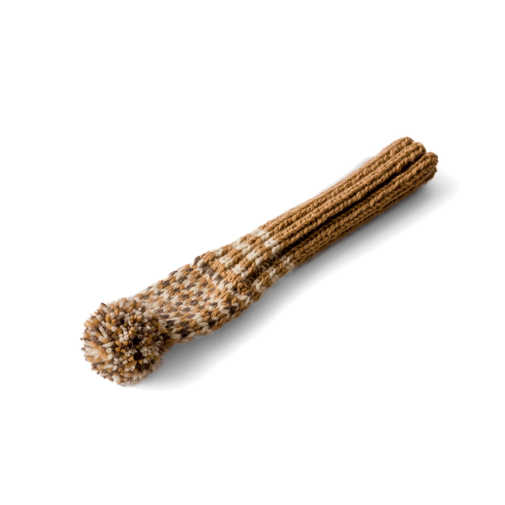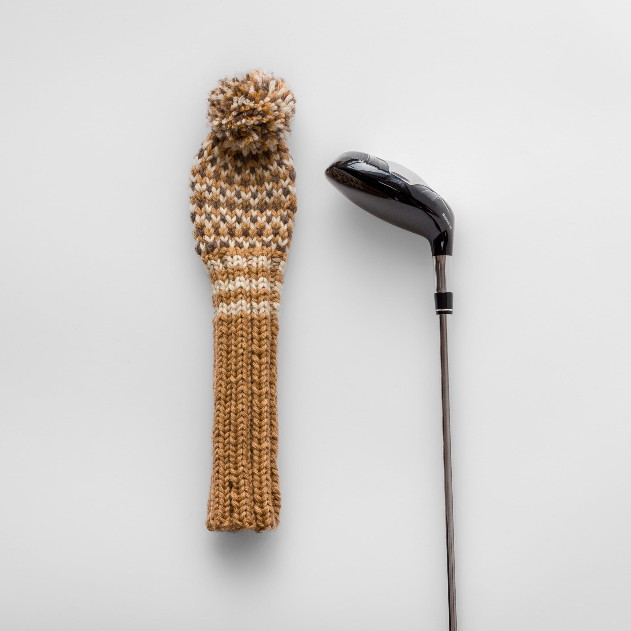 This 100% wool hand-knitted headcover is designed for hybrid clubs, which are great for every shot, from tee shots to tricky shots in the woods. The cover’s compact design makes it easy to handle in any such situations. The small pom-pom won’t get in the way when stored with other clubs.