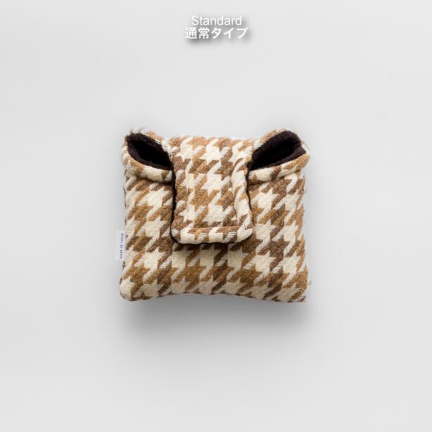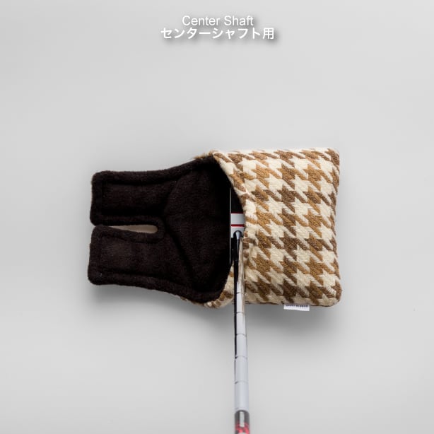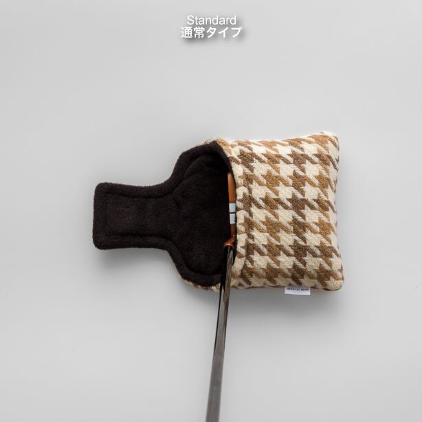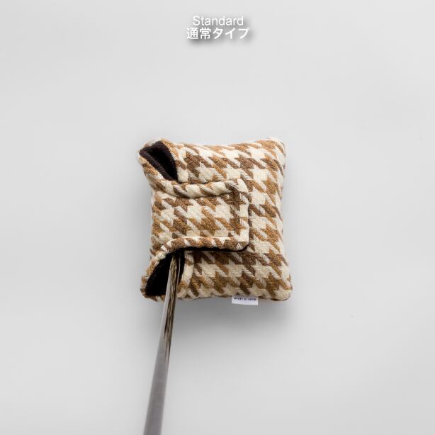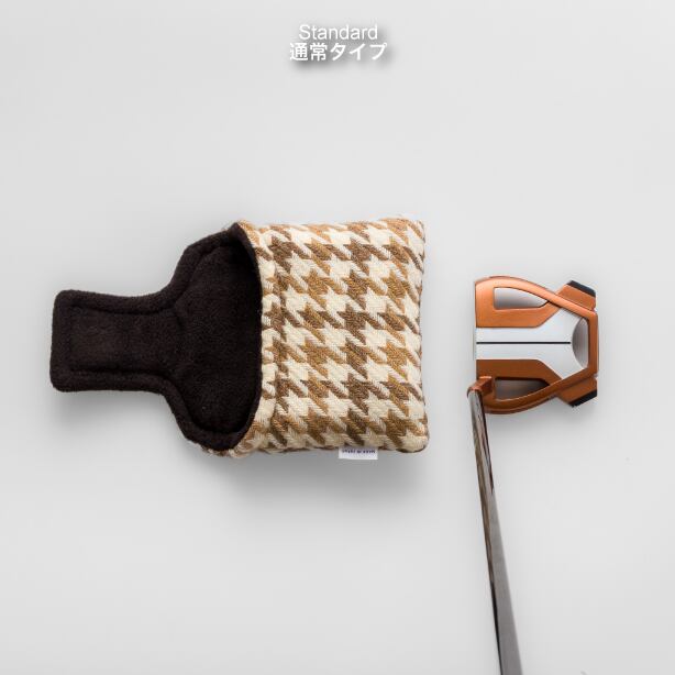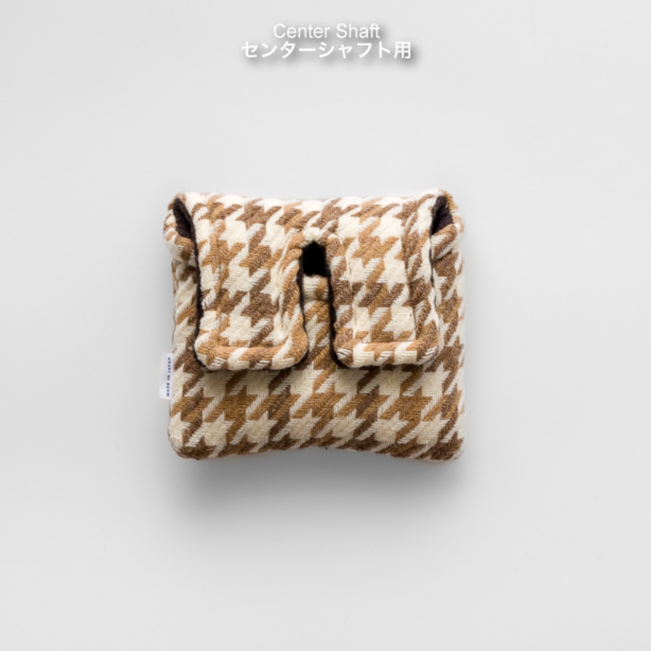 This putter cover is made from a tri-color houndstooth tweed woven in the Bishu region, a well-known wool area in Japan. The fabric has a soft feel with a light, airy texture, and the calm color mix gives it a classic and grown-up look.