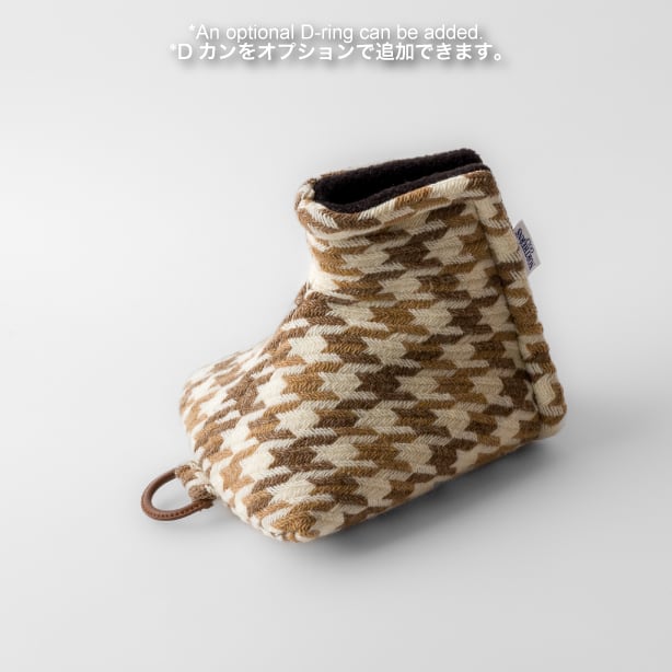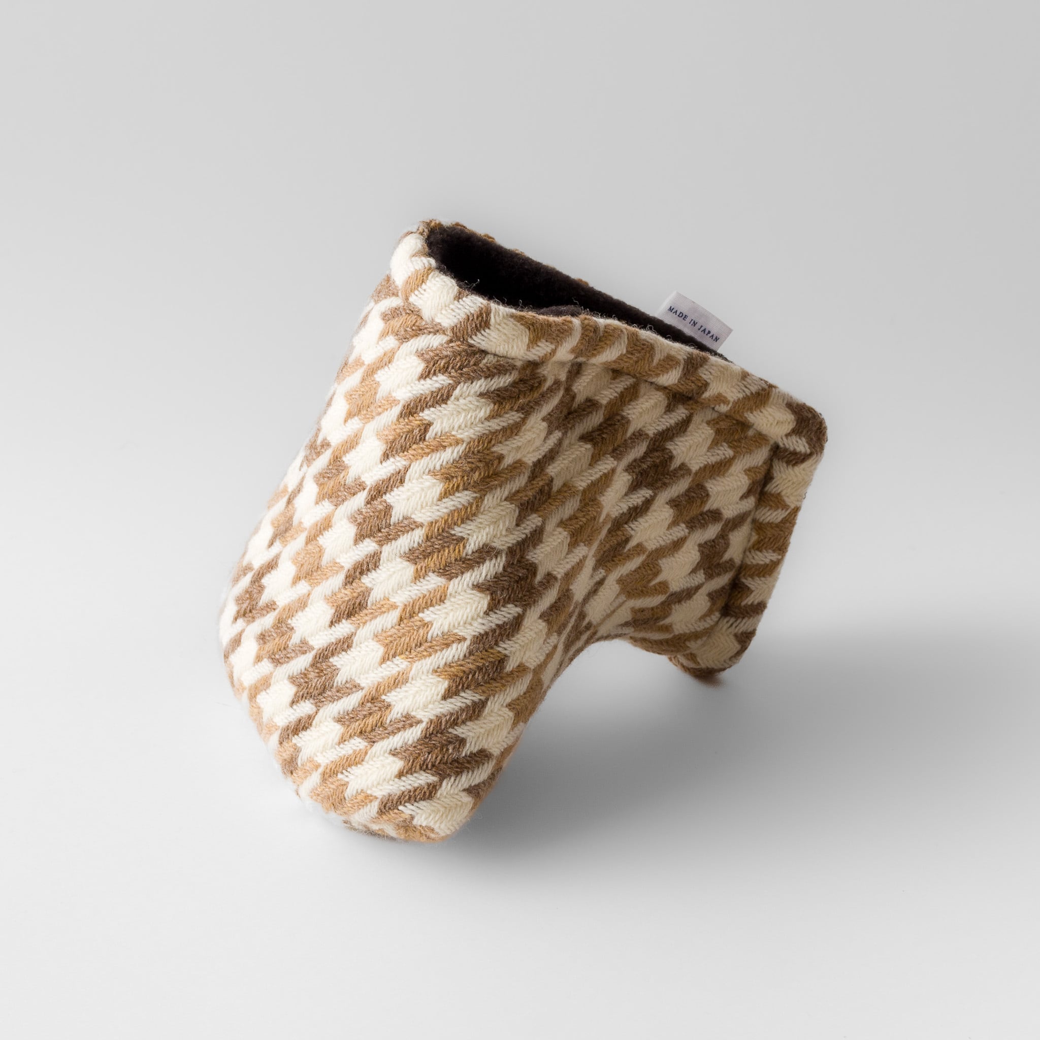 日本のウール産地として知られる尾州で織られた、三色の千鳥格子ツイードを使用したパターカバーです。マレットタイプでもネック(ホーゼル)をしっかり保護できるよう、ブレード用パターカバーのスタイルで、マレット用にサイズを調整し製作いたしました。パターを大切にされているお客様にぜひご使用いただきたいカバーです。