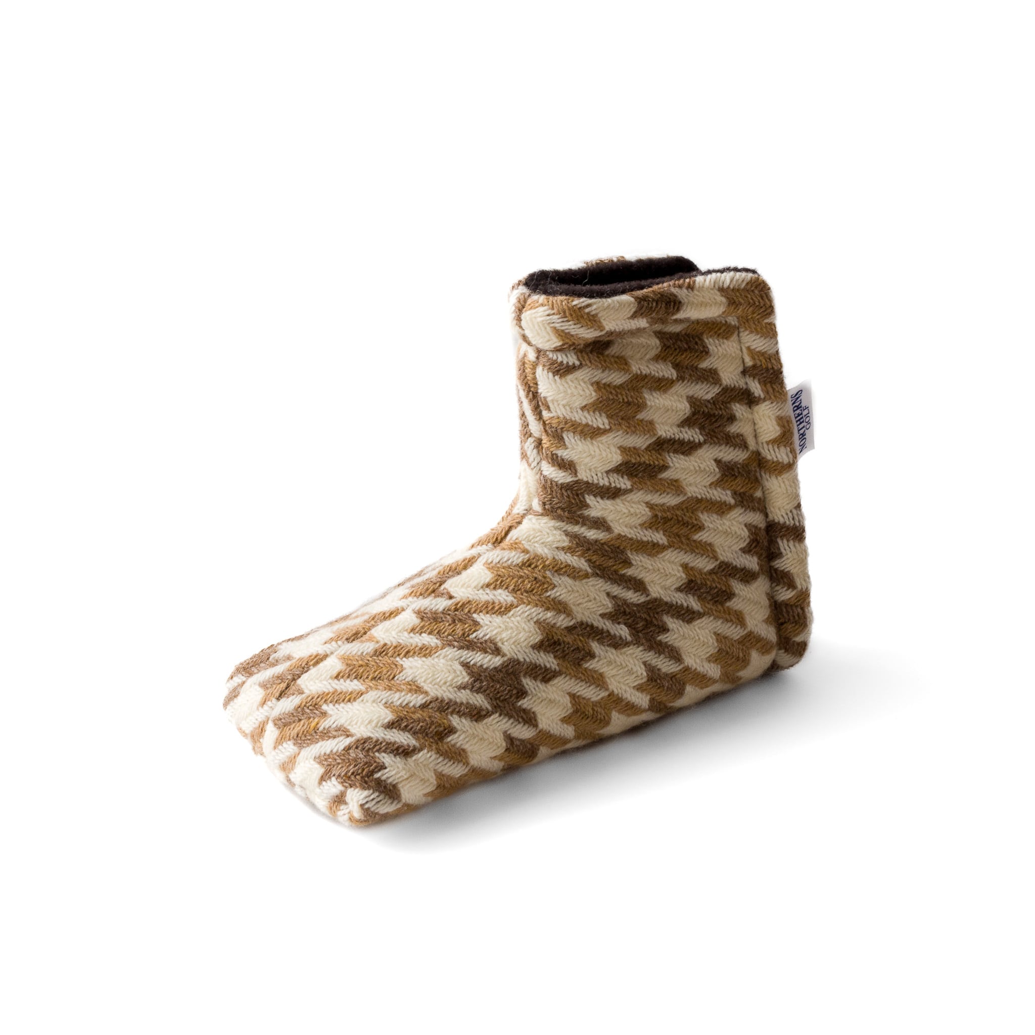 日本のウール産地として知られる尾州で織られた、三色の千鳥格子ツイードを使用したパターカバーです。やわらかく空気を含んだような質感と穏やかな色合いが特徴で、大人らしい上品な佇まいに仕立てました。