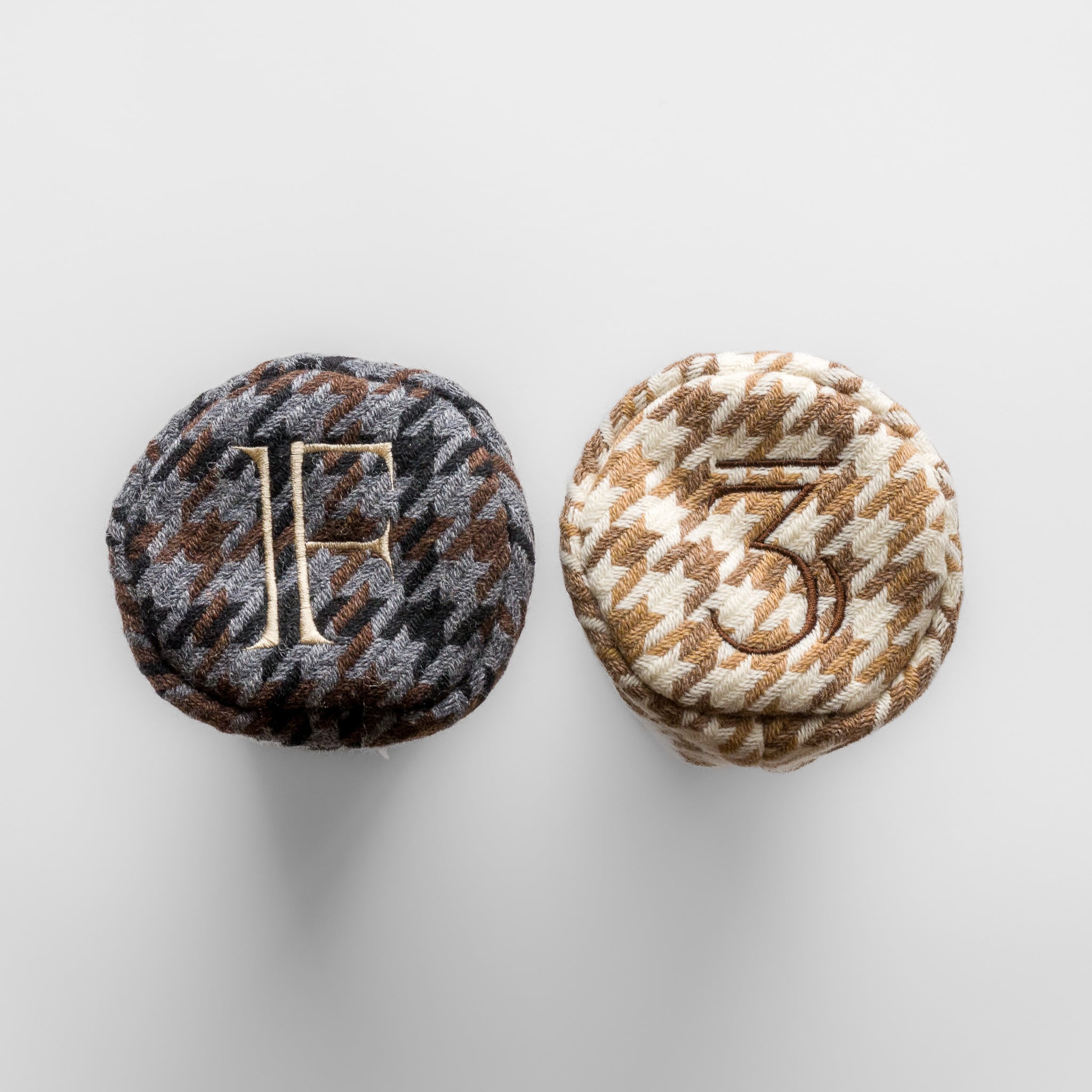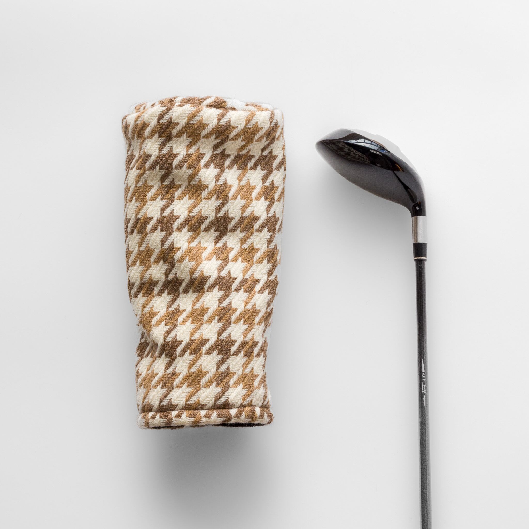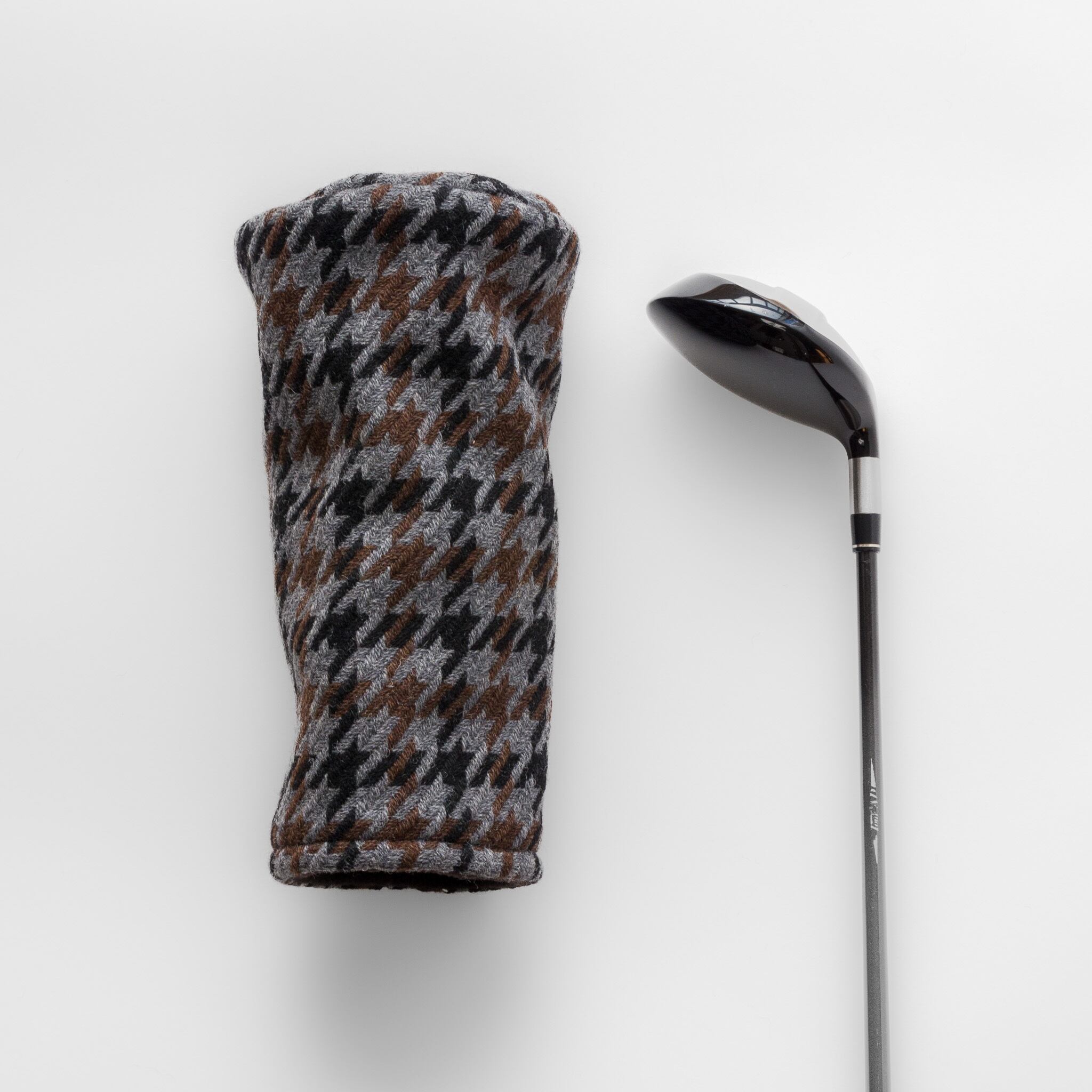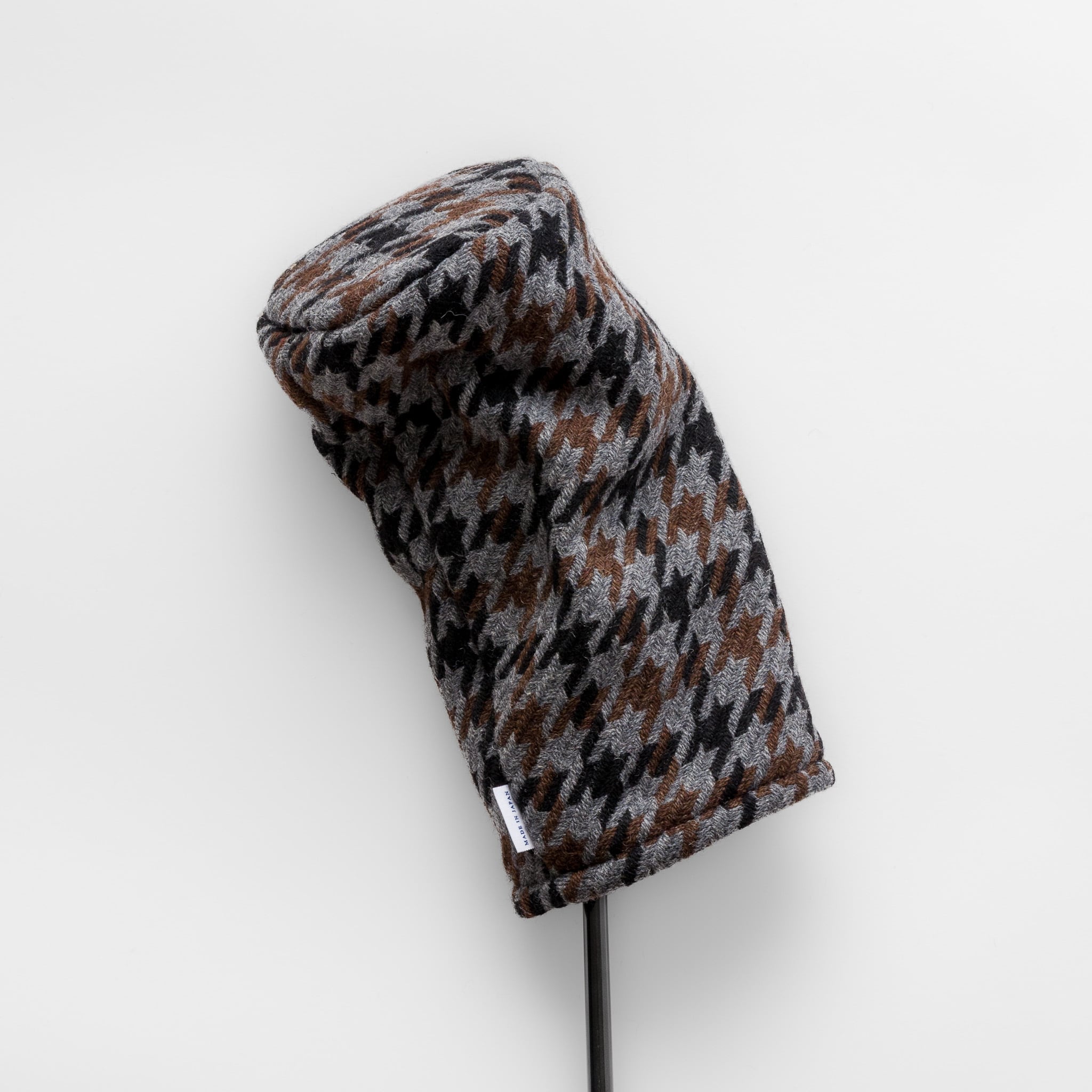 This headcover is made from a tri-color houndstooth tweed woven in the Bishu region, a well-known wool area in Japan. The fabric has a soft feel with a light, airy texture, and the calm color mix gives it a classic and grown-up look.
