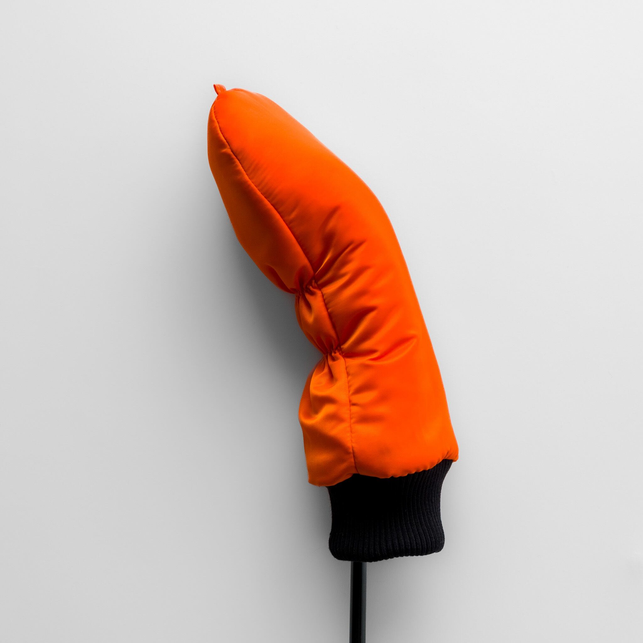 This headcover is inspired by the classic MA-1 flight jacket. It features a soft fleece lining that protects the club head from scratches. In addition to an elastic band, rib knit is added at the opening to prevent the club from slipping out. The water-repellent nylon fabric ensures peace of mind even on rainy golf days.