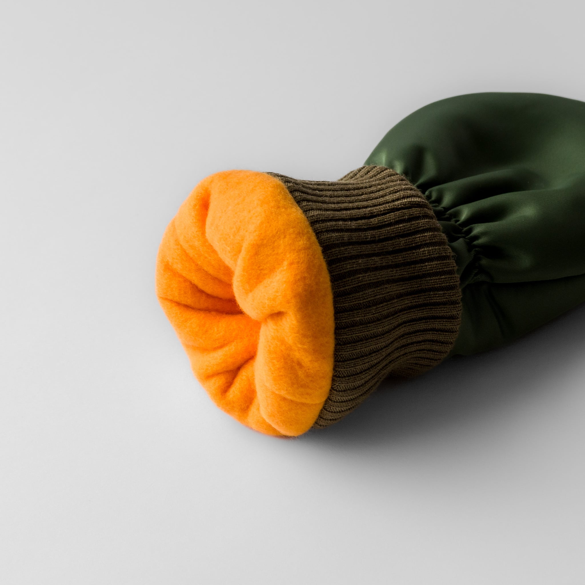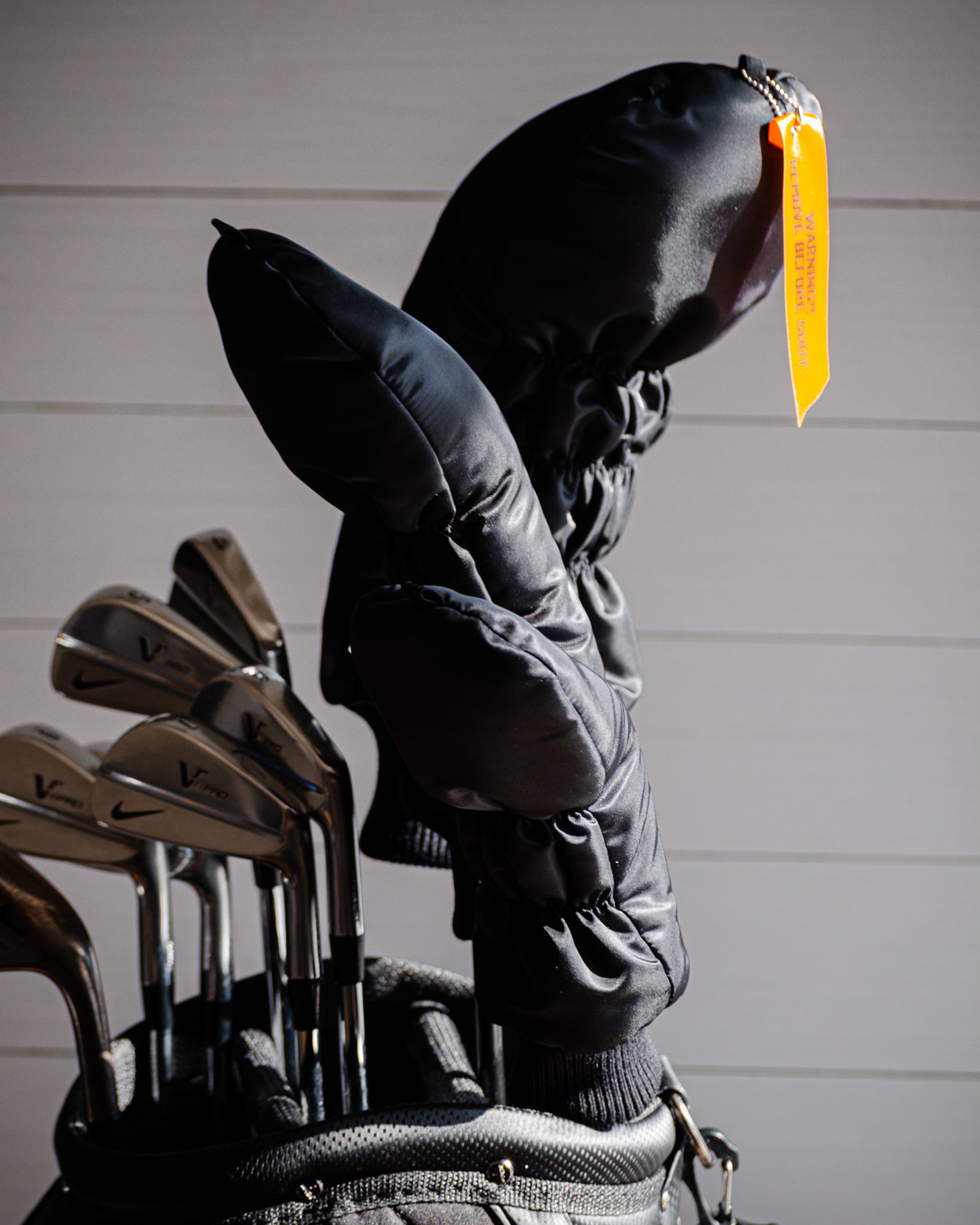MA-1フライトジャケットからインスパイアされたヘッドカバーです。裏地には柔らかいフリースを採用し、クラブヘッドを傷から守ります。ゴムの絞りに加えて挿入口にリブニットを取り付けることで、クラブが抜け落ちにくくなるように工夫しています。撥水性のあるナイロン生地なので、雨の日のゴルフでも安心です。