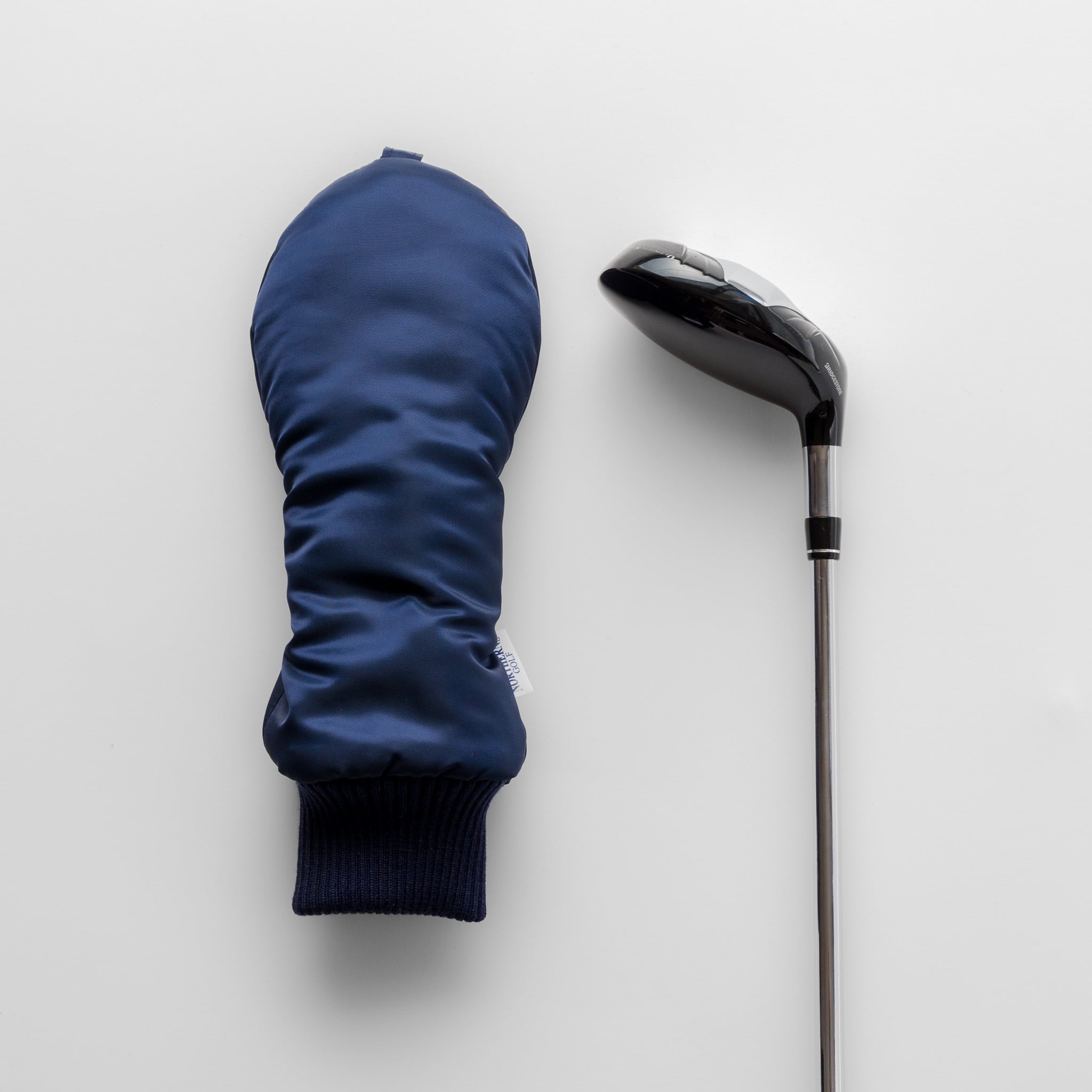 MA-1フライトジャケットからインスパイアされたヘッドカバーです。裏地には柔らかいフリースを採用し、クラブヘッドを傷から守ります。ゴムの絞りに加えて挿入口にリブニットを取り付けることで、クラブが抜け落ちにくくなるように工夫しています。撥水性のあるナイロン生地なので、雨の日のゴルフでも安心です。