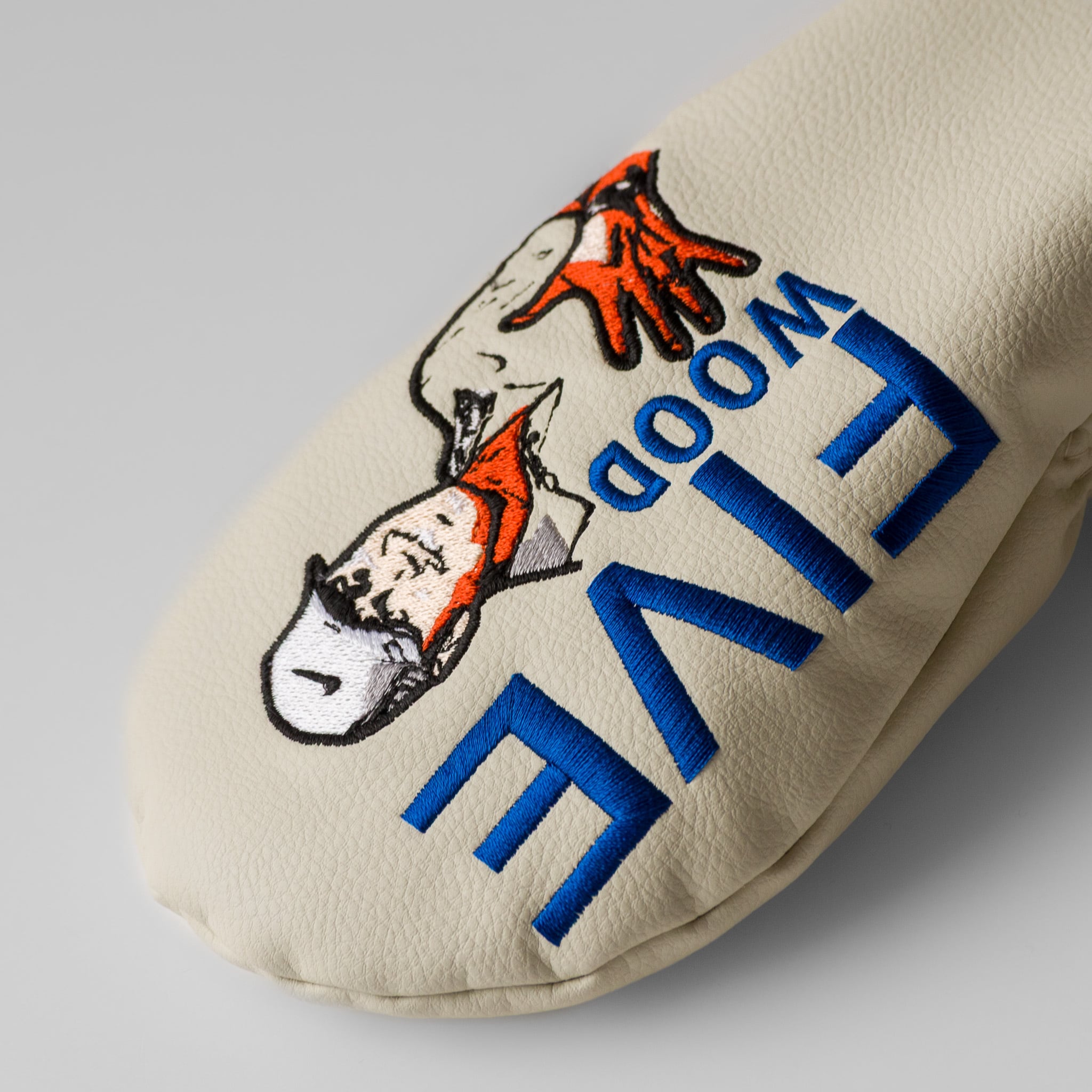 「5」にまつわる名場面を刺繍した、5番ウッドにぴったりのヘッドカバーです。